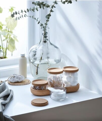 IKEA SAXBORGA | ガラス・コルク | 5点セット 小~大 | デザイン重視、トレイ付き、多用途 | 手頃 |